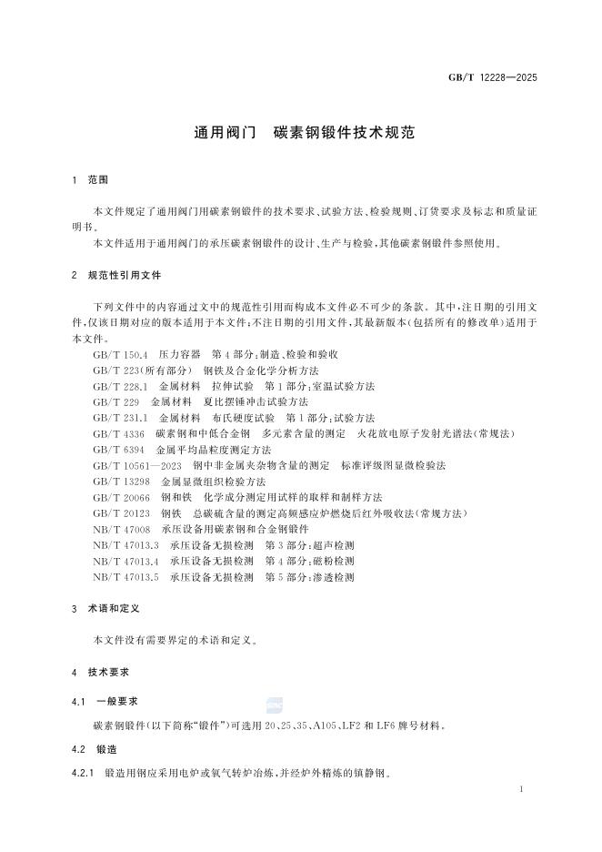 GB/T 12228-2025 通用阀门 碳素钢锻件技术规范
