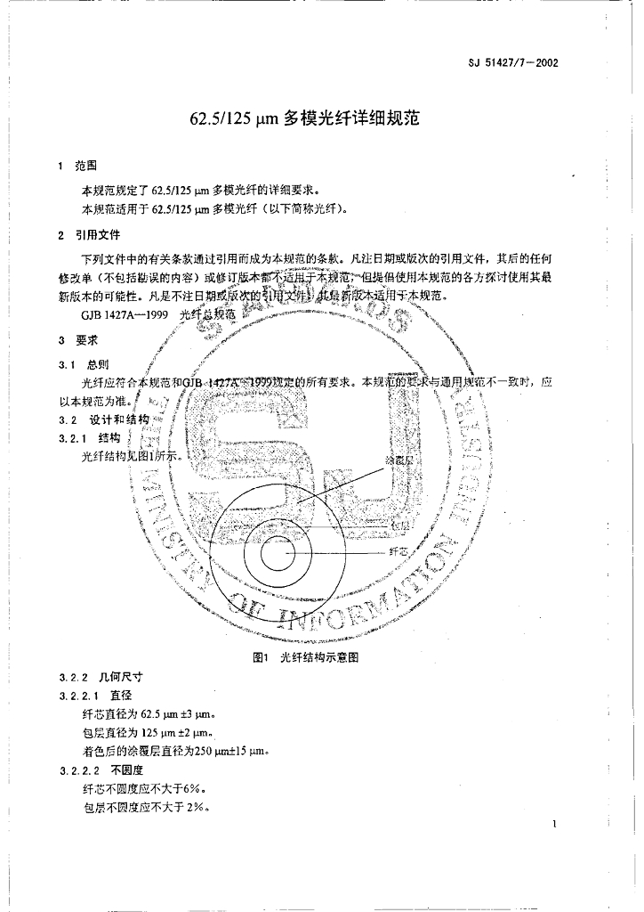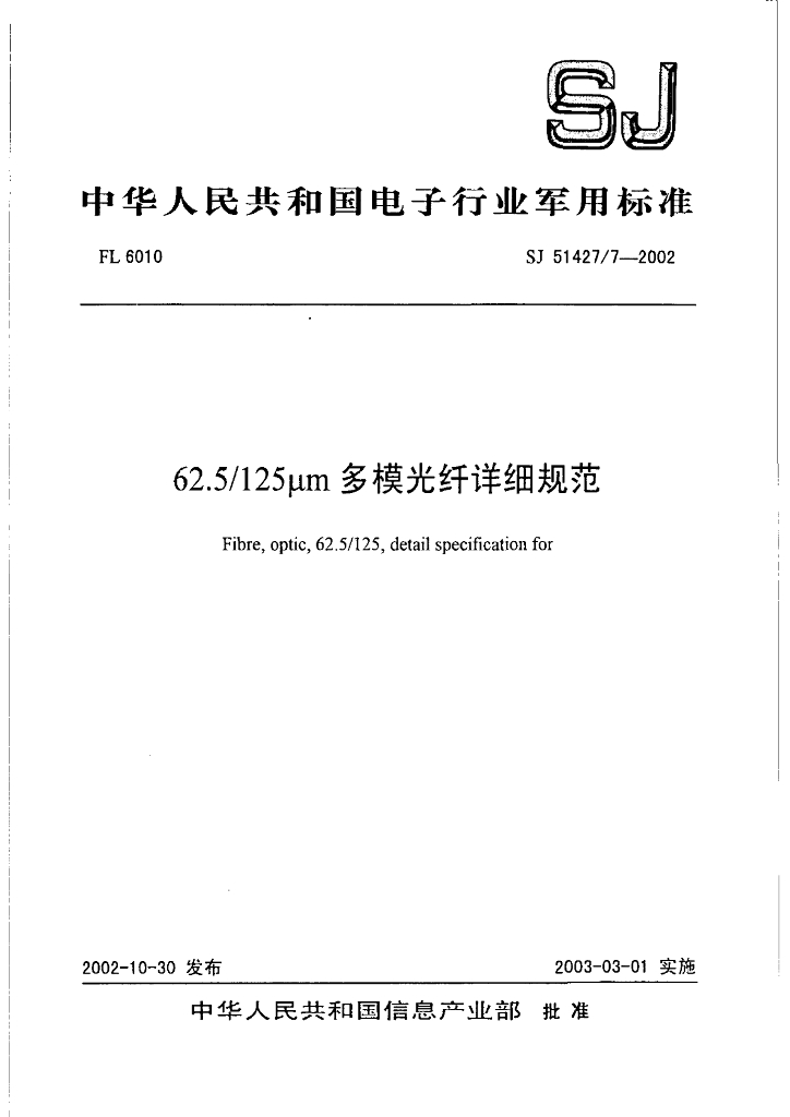 SJ 51427/7-2002 62.5/125mm多模光纤详细规范