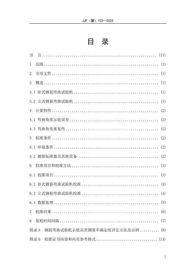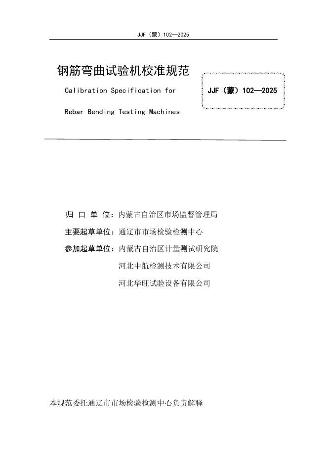 JJF(蒙)102-2025 钢筋弯曲试验机校准规范