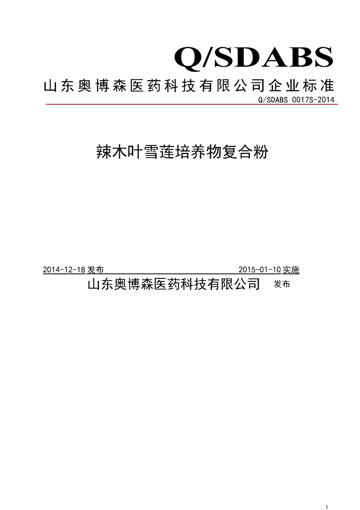 Q/SDABS 0017S-2014 山东奥博森医药科技有限公司 辣木叶雪莲培养物复合粉