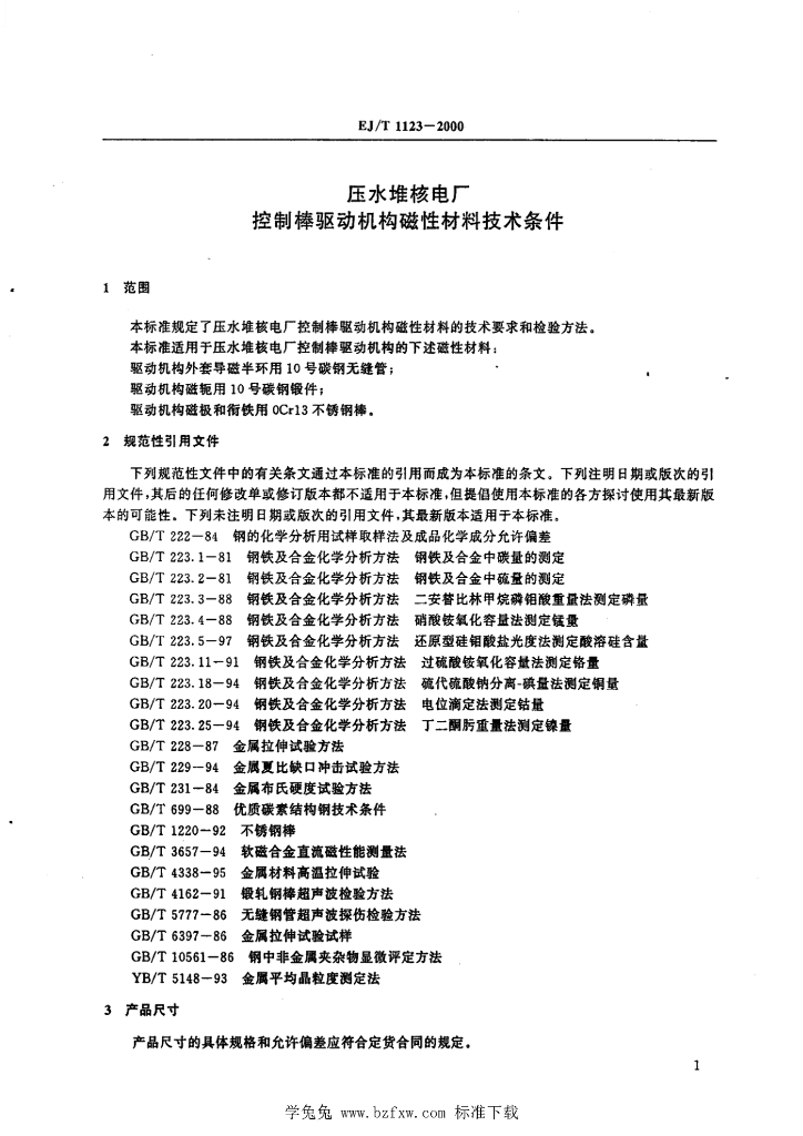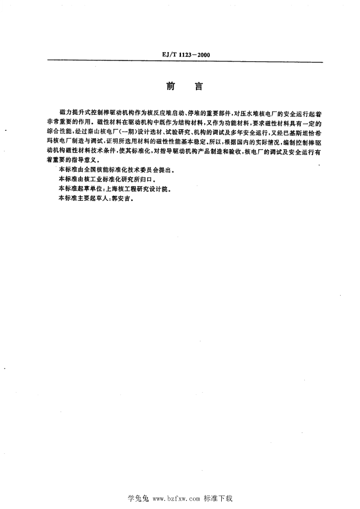 EJ/T 1123-2000 压水堆核电厂控制棒驱动机构磁性材料技术条件