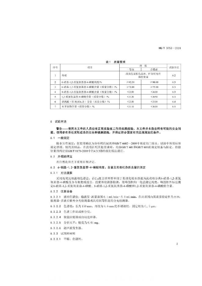 HG/T 3752-2024 6-硝基-1,2-重氮氧基萘-4-磺酸