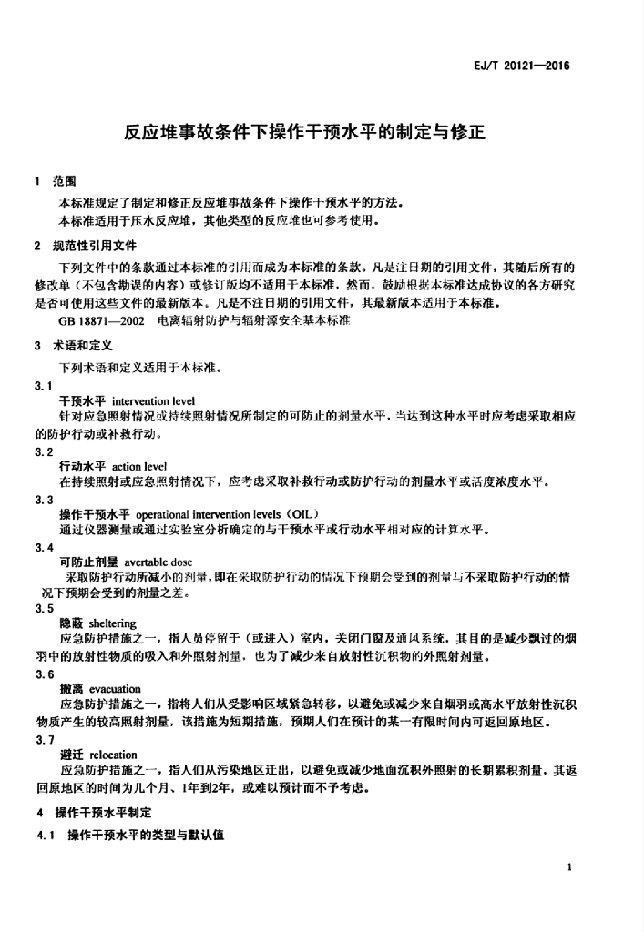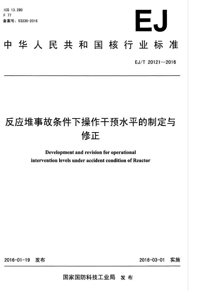EJ/T 20121-2016 反应堆事故条件下操作干预水平的制定与修正