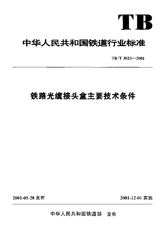 TB/T 3023-2001 铁路光缆接头盒主要技术条件