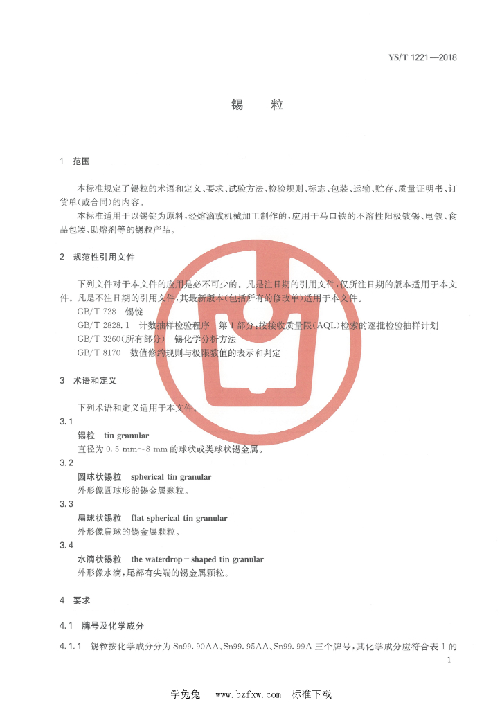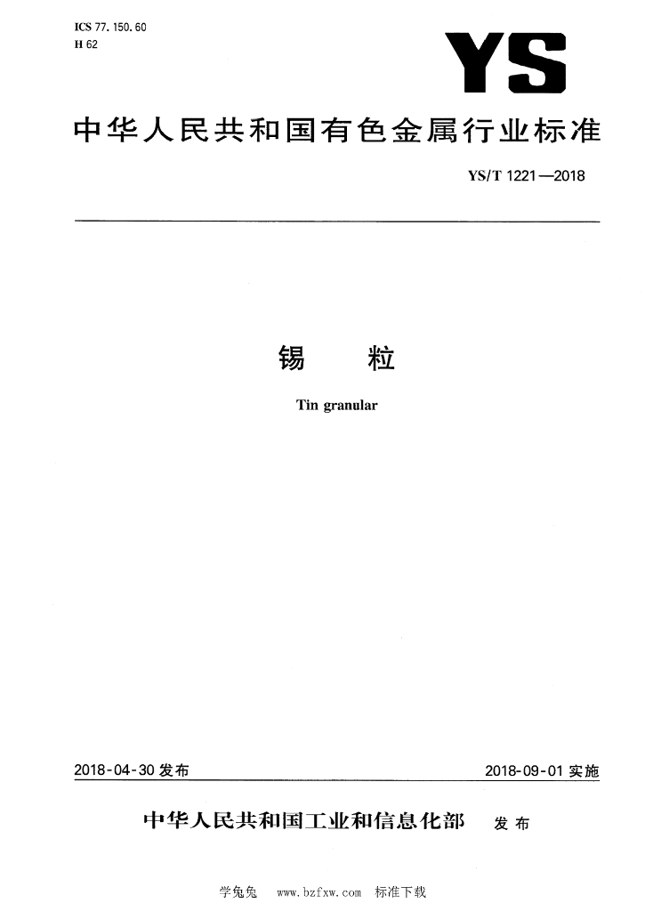 YS/T 1221-2018 锡粒
