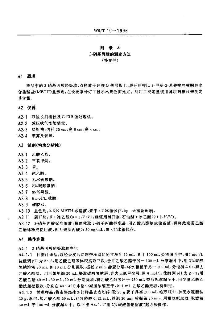 WS/T 10-1996 变质甘蔗食物中毒诊断标准及处理原则