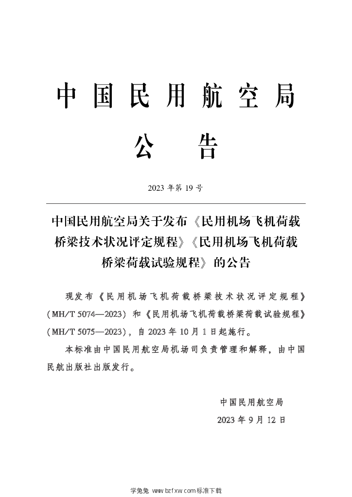 MH/T 5074-2023 民用机场飞机荷载桥梁技术状况评定规程