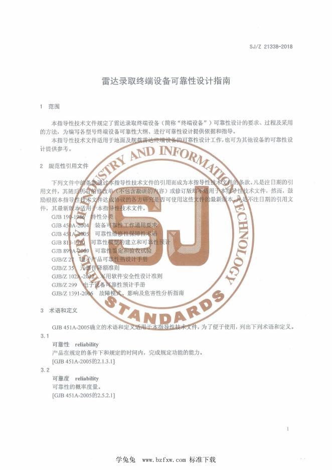 SJ/Z 21338-2018 雷达录取终端设备可靠性设计指南