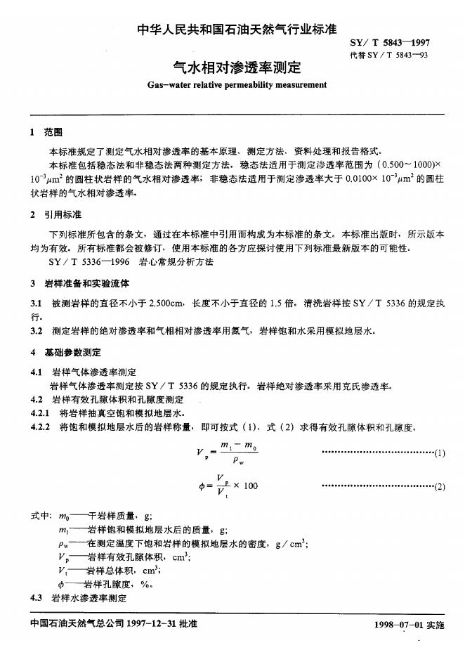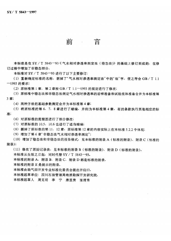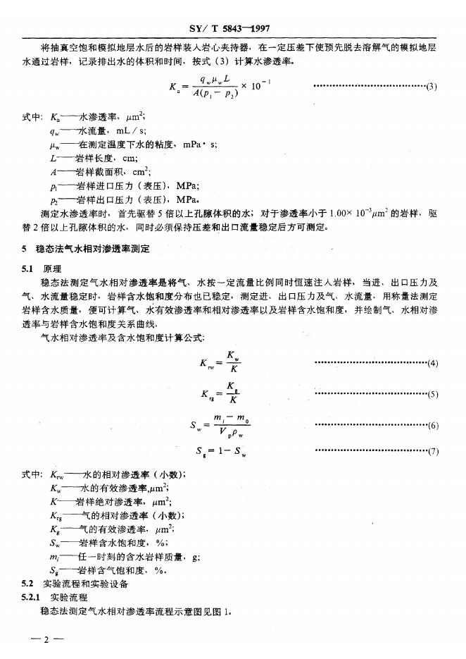 SY/T 5843-1993 气水相对渗透率测定法稳态法