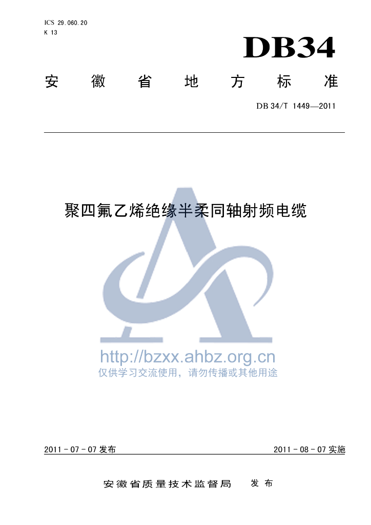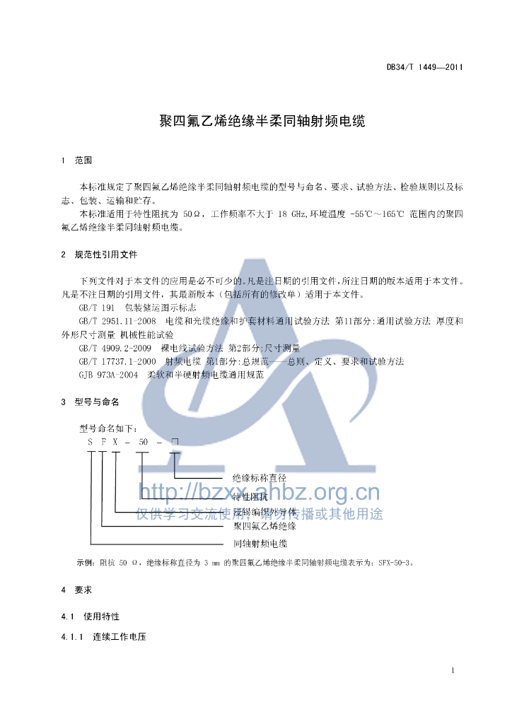 DB34/T 1449-2011 聚四氟乙烯绝缘半柔同轴射频电缆
