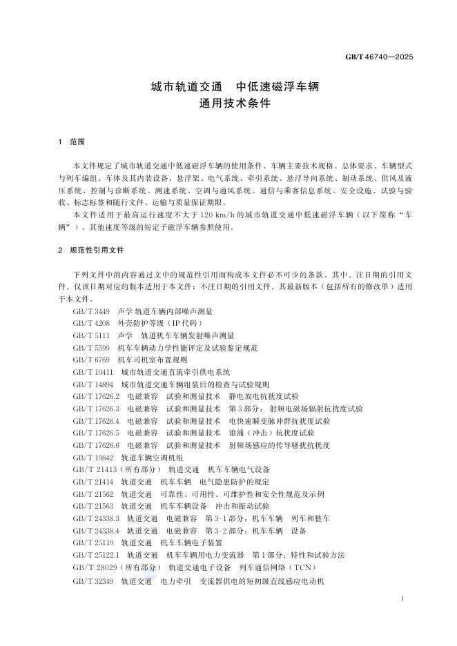 GB/T 46740-2025 城市轨道交通 中低速磁浮车辆通用技术条件