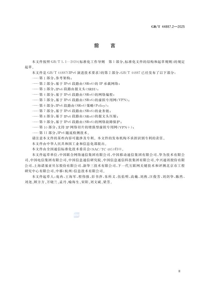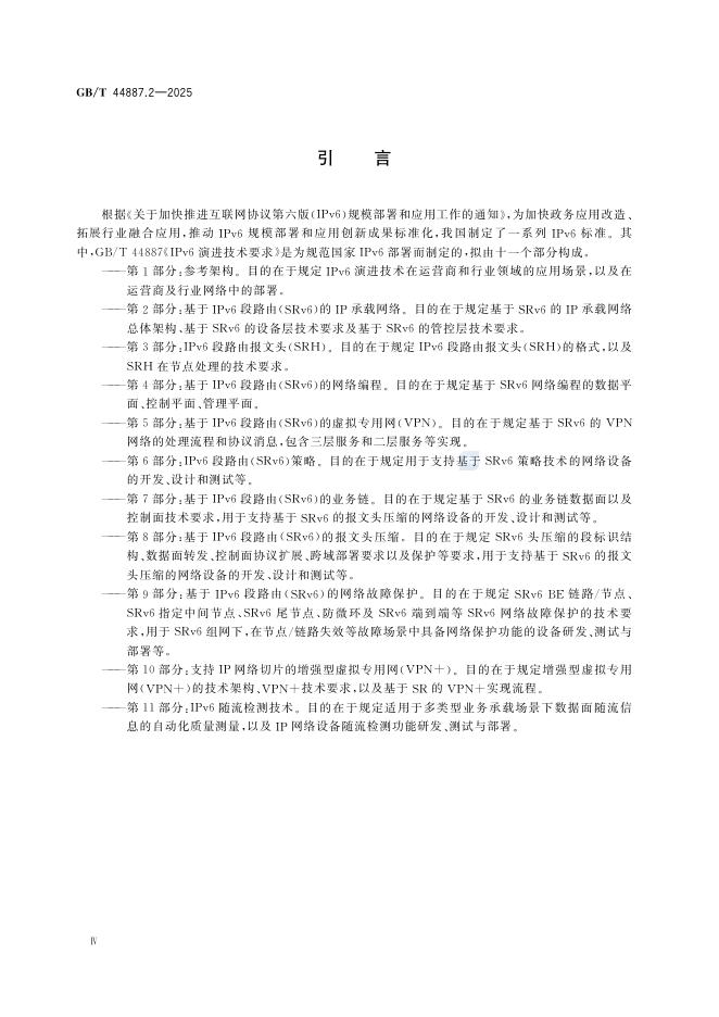 GB/T 44887.2-2025 IPv6 演进技术要求 第2部分:基于IPv6 段路由(SRv6)的IP承载网络