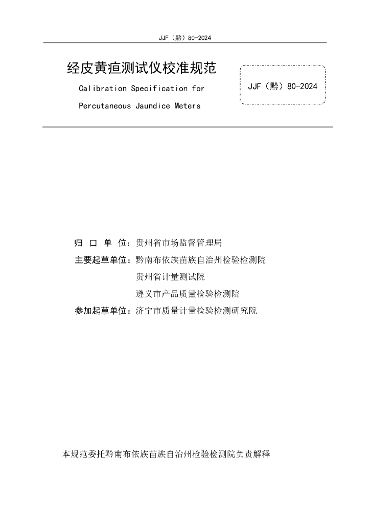 JJF(黔)80-2024 经皮黄疸测试仪校准规范
