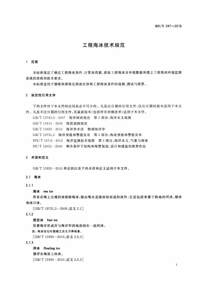 HY/T 047-1999 工程海冰技术规范