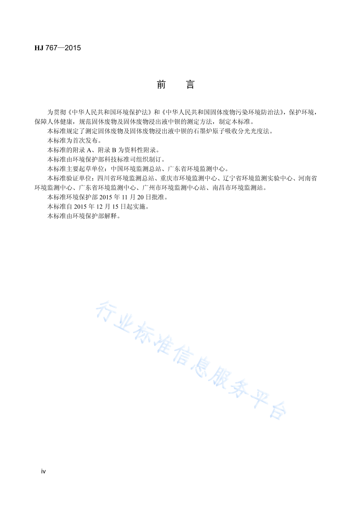 HJ 767-2015 固体废物 钡的测定 石墨炉原子吸收分光光度法