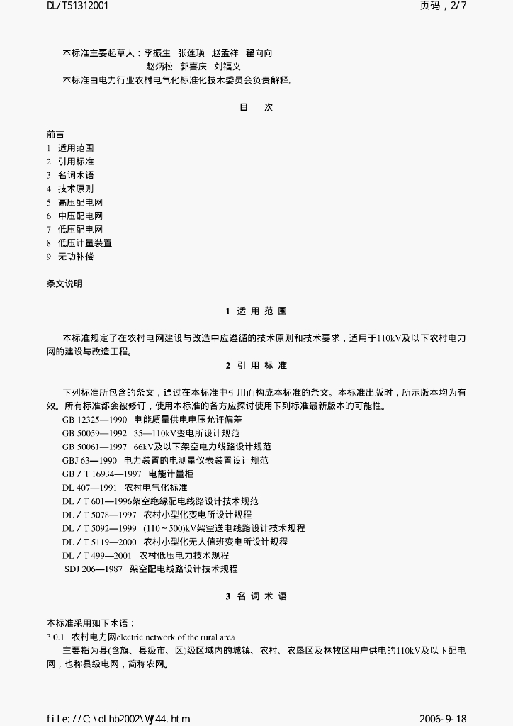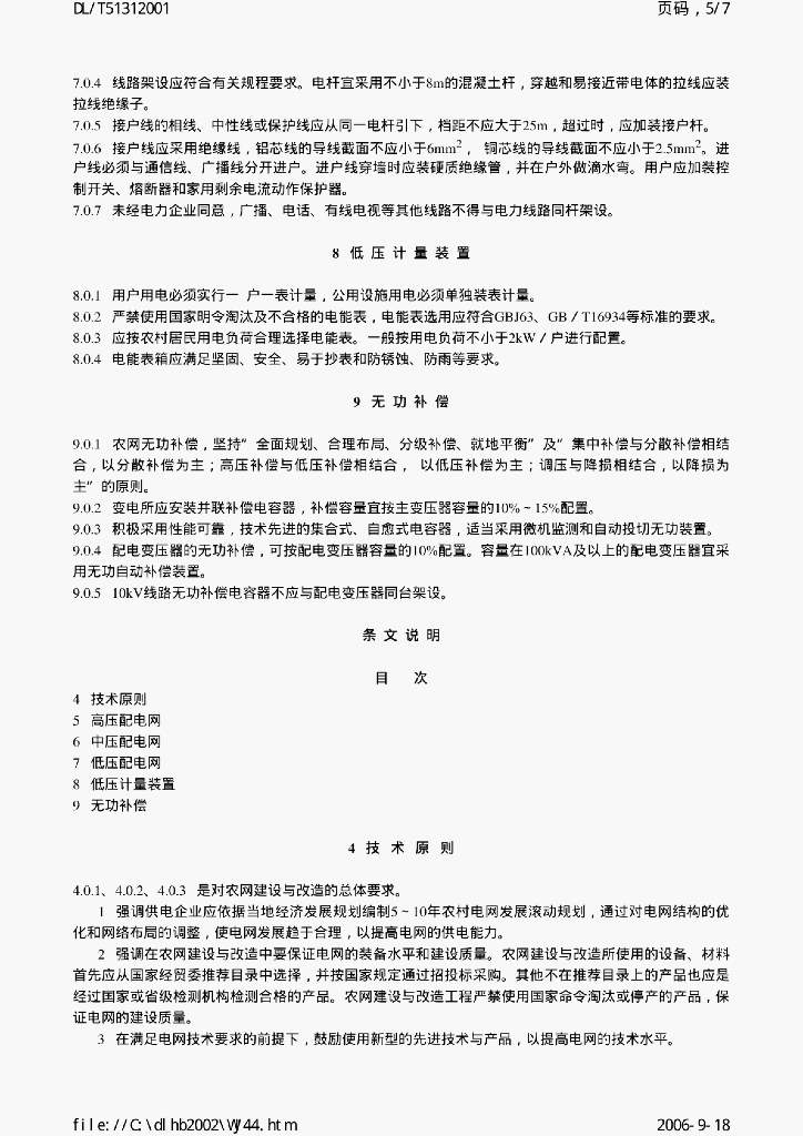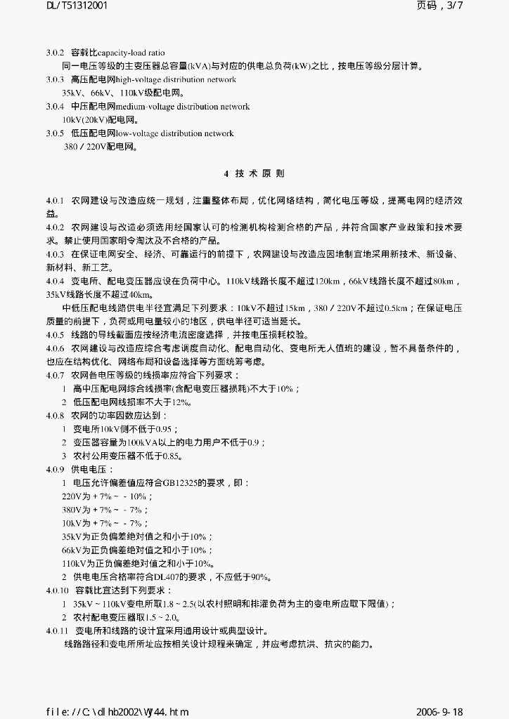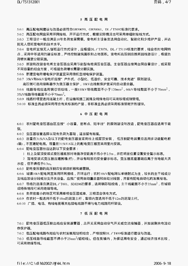 DL/T 5131-2001 农村电网建设与改造技术导则