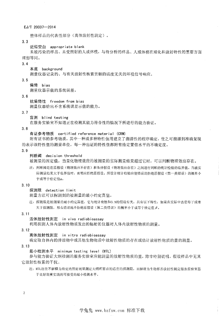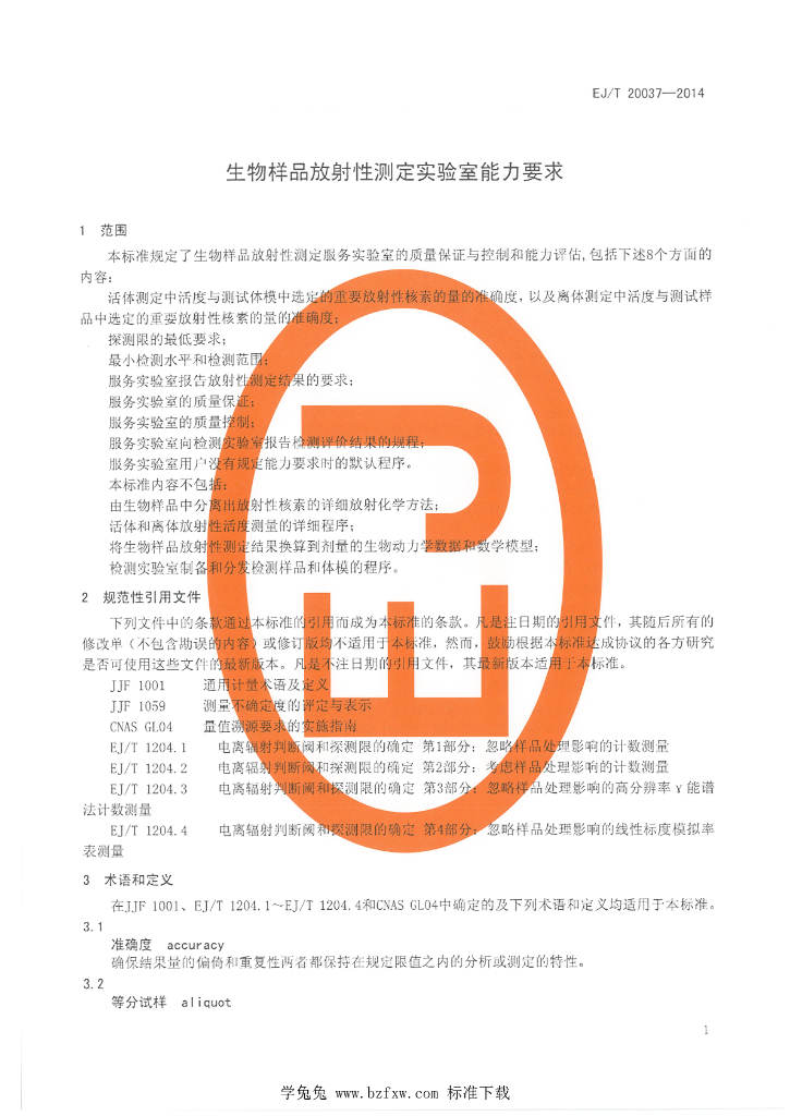 EJ/T 20037-2014 生物样品放射性测定实验室能力要求