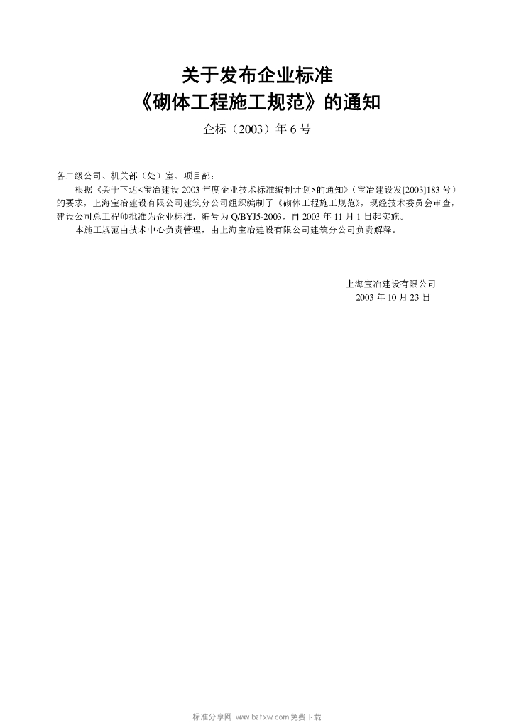 Q/BYJ 5-2003 砌体工程施工规范