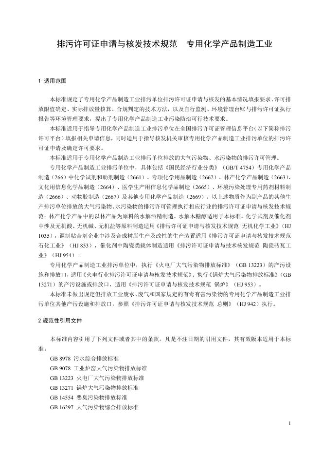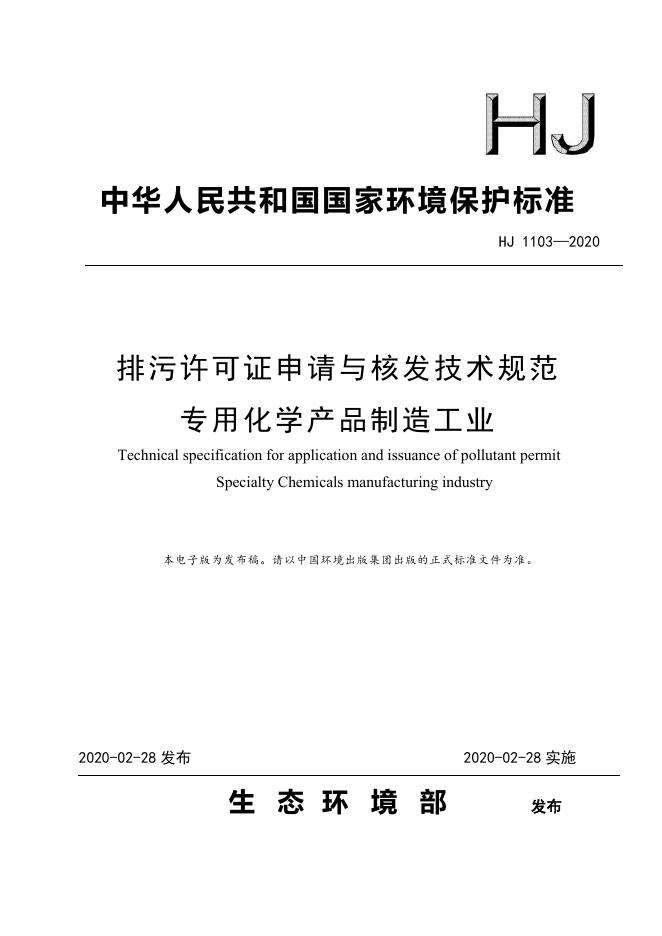 HJ 1103-2020 排污许可证申请与核发技术规范 专用化学产品制造工业