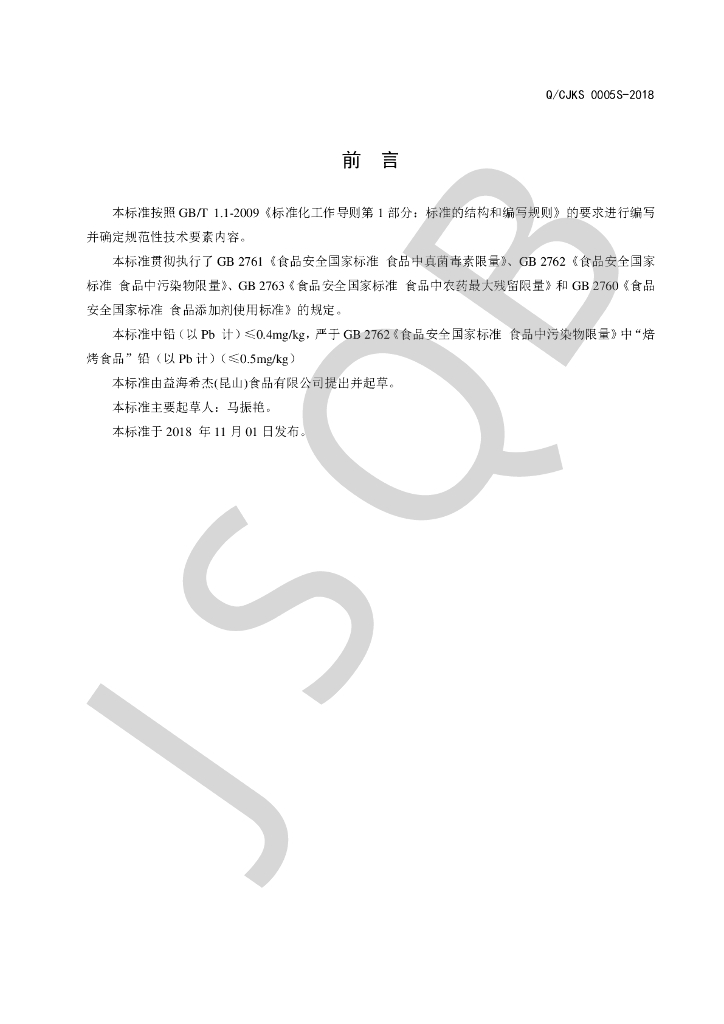 Q/CJKS 0005S-2018 焙烤用饼粉