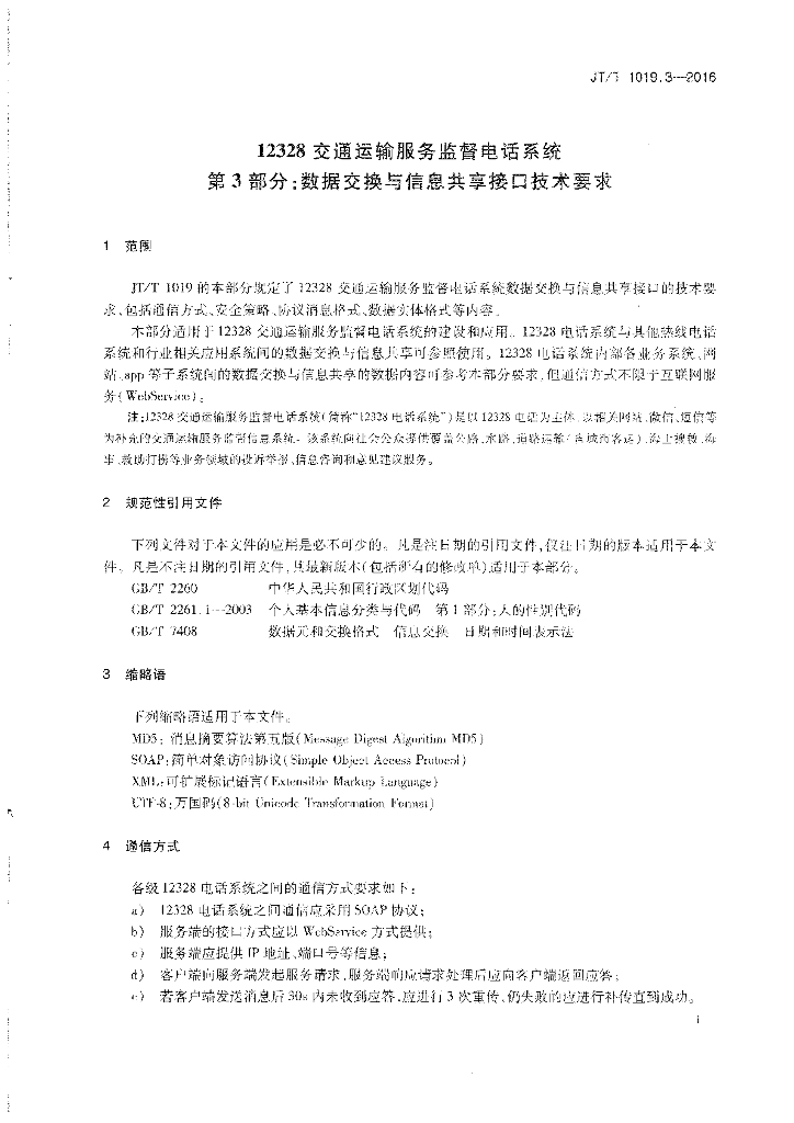 JT/T 1019.3-2016 12328交通运输服务监督电话系统 第3部分:数据交换与信息共享接口技术要求