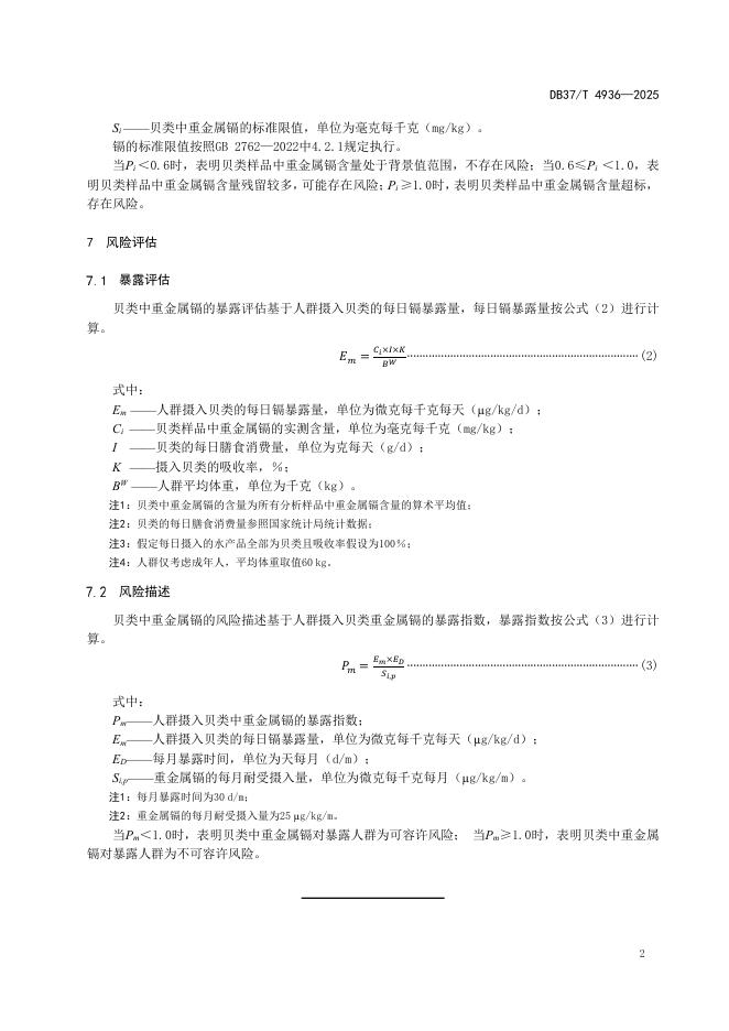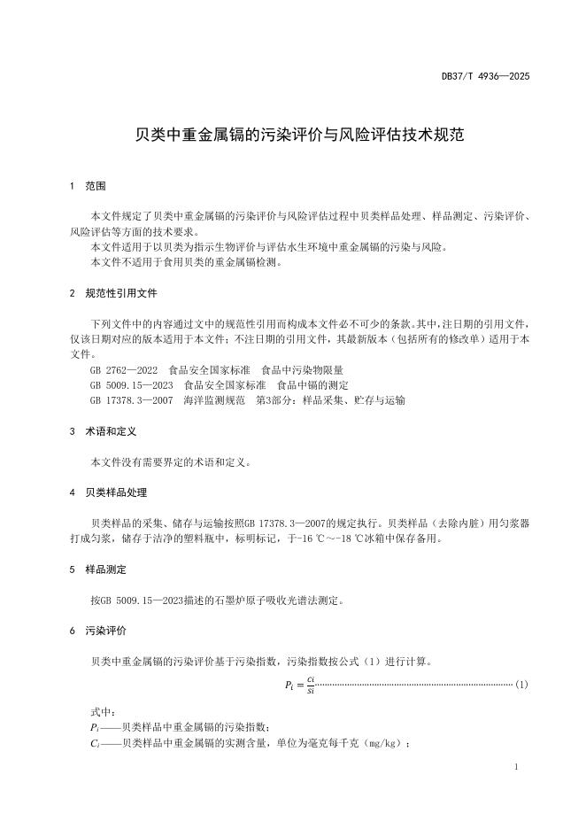 DB37/T 4936-2025 贝类中重金属镉的污染评价与风险评估技术规范