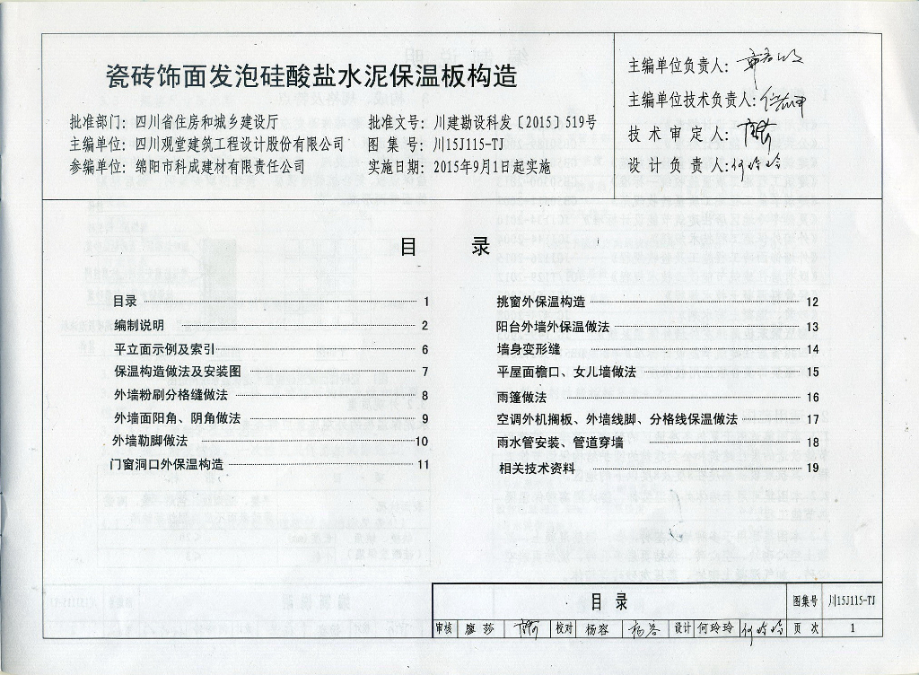 川15J115-TJ 瓷砖饰面发泡硅酸盐水泥保温板构造图集
