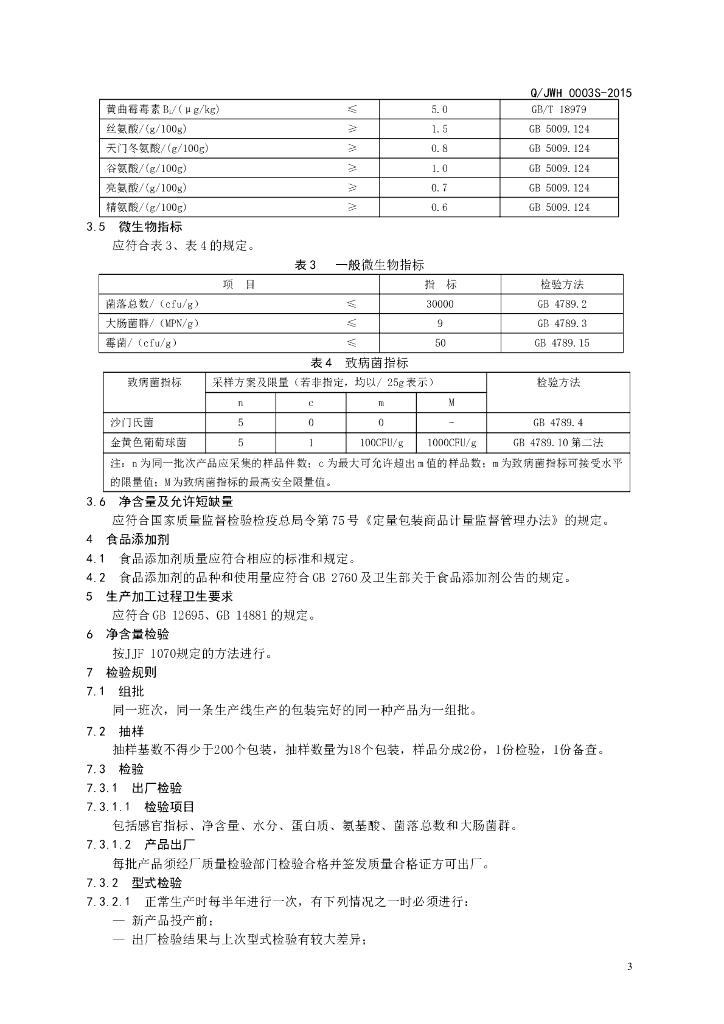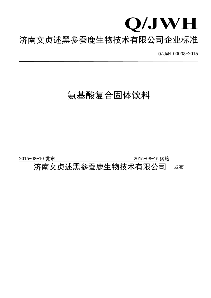 Q/JWH 0003S-2015 济南文贞述黑参蚕鹿生物技术有限公司 氨基酸复合固体饮料