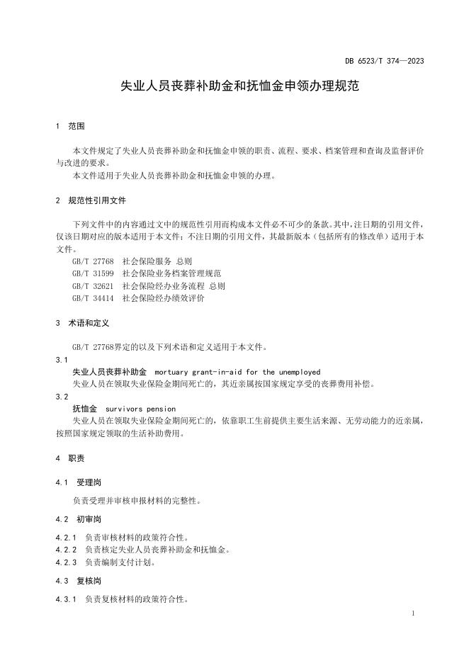 DB6523/T 374-2023 失业人员丧葬补助金和抚恤金申领办理规范