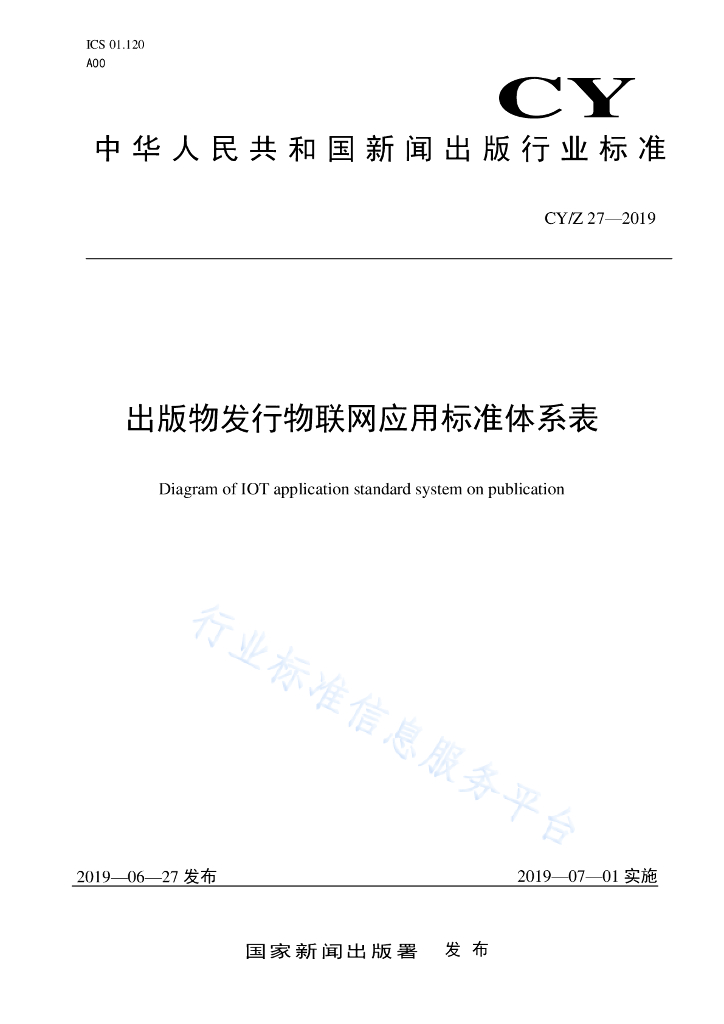 CYZ 27-2019 出版物发行物联网应用标准体系表