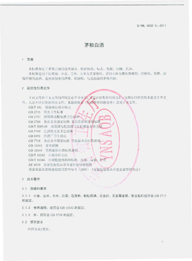 Q/MRJY 0001S-2023 重阳酒 广西融水元宝山苗润特色酒业有限公