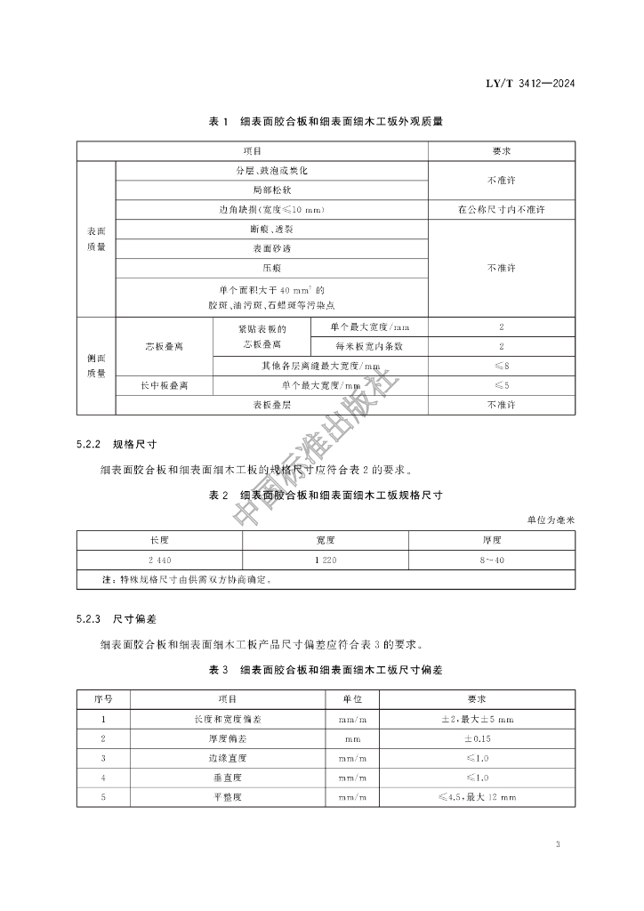 LY/T 3412-2024 细表面人造板