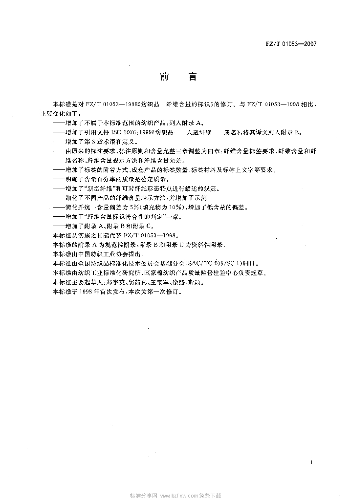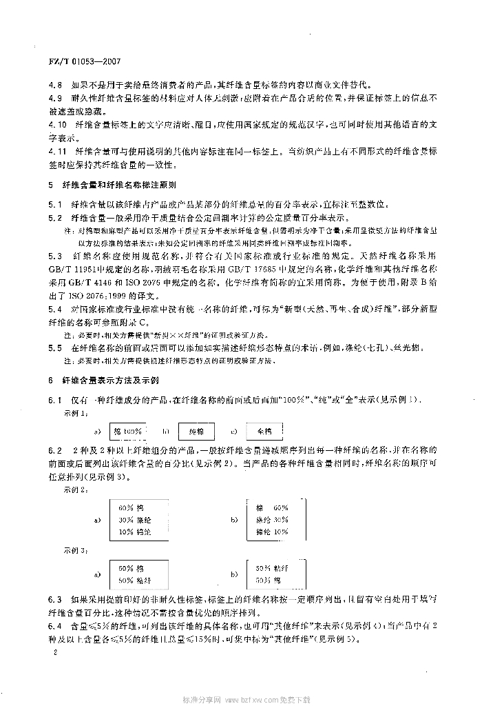 FZ/T 01053-2007 纺织品 纤维含量的标识