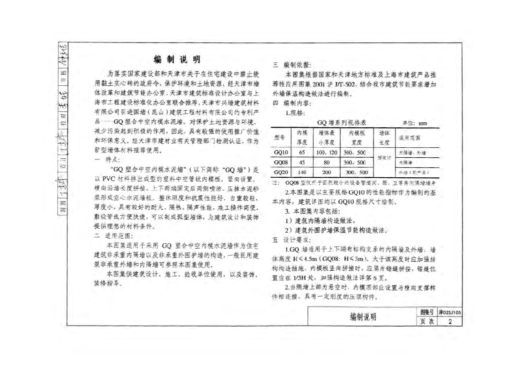 津02SJ105 GQ塑合中空内模水泥墙建筑构造图集