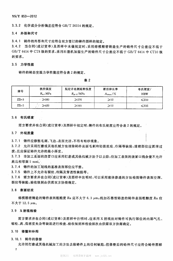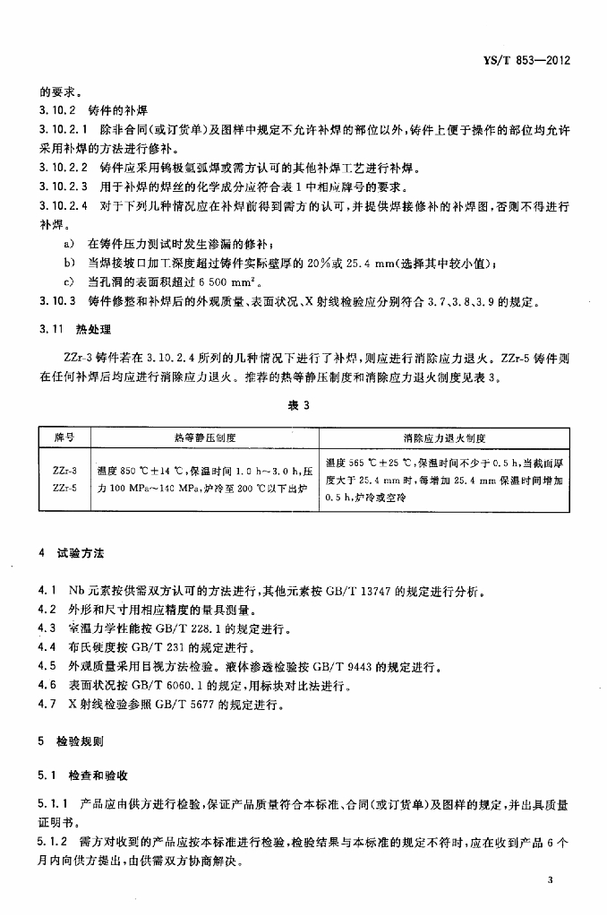 YS/T 853-2012 锆及锆合金铸件