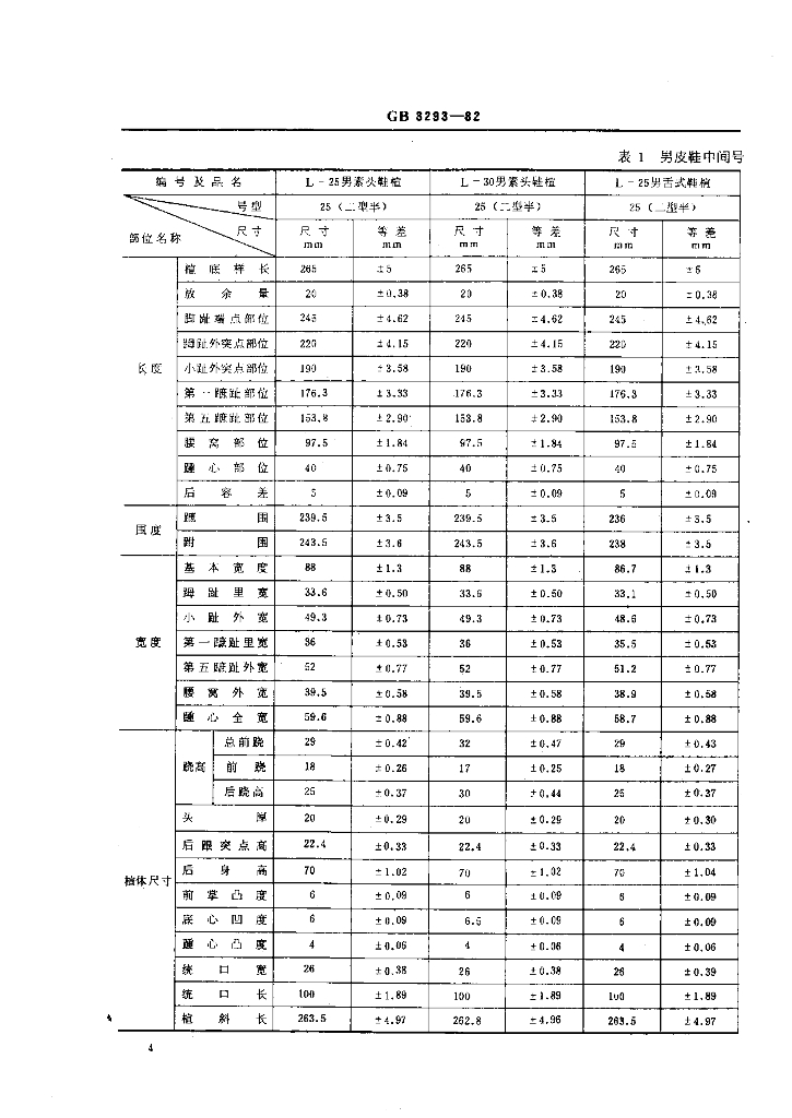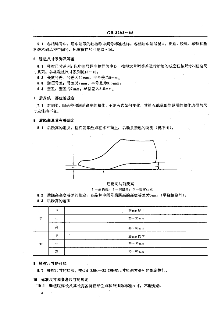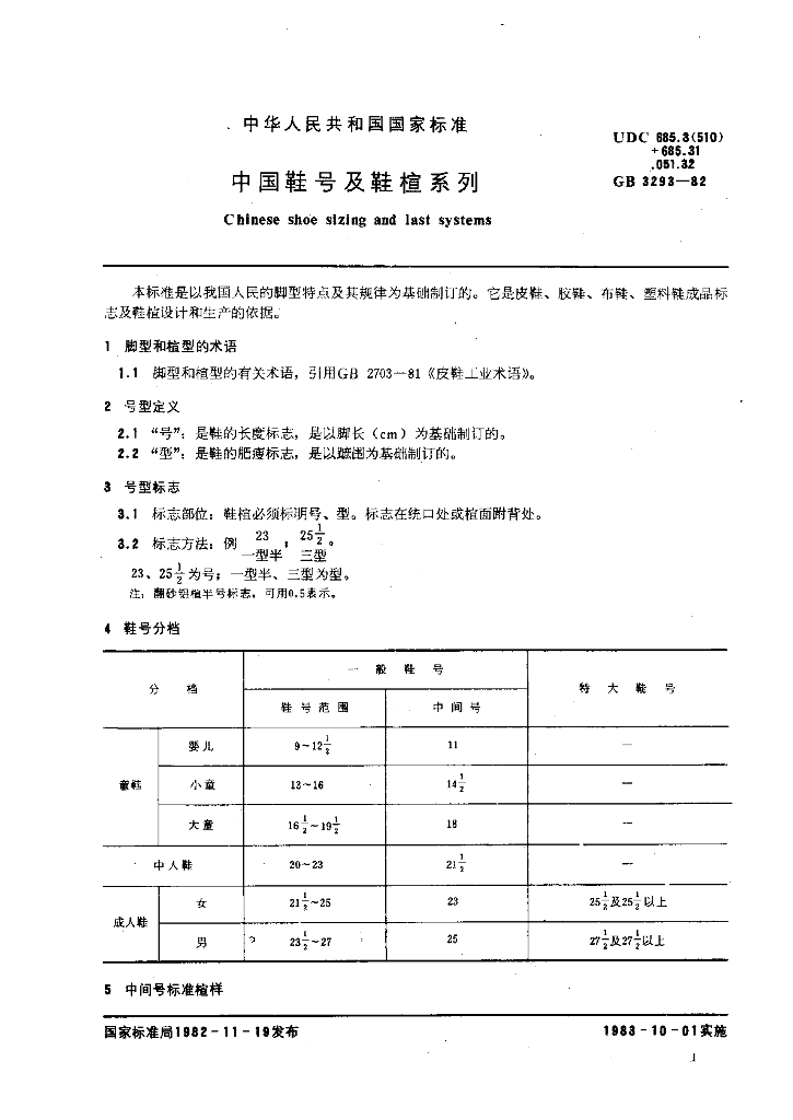 GB/T 3293-1982 中国鞋号及鞋楦系列