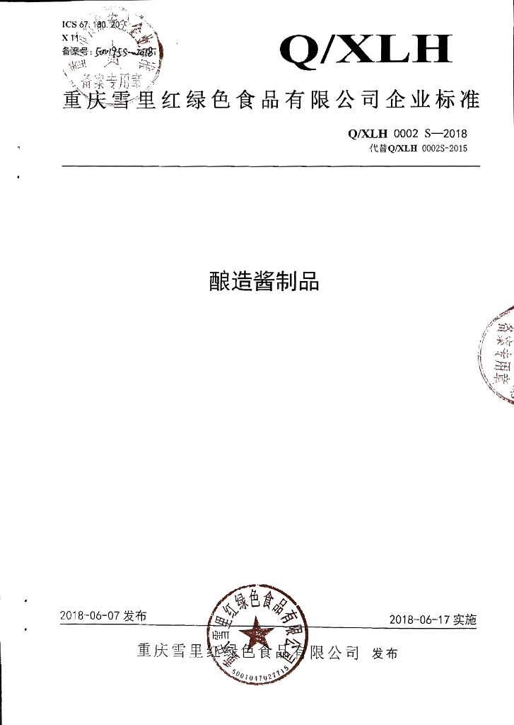 Q/XLH 0002S-2018 酿造酱制品