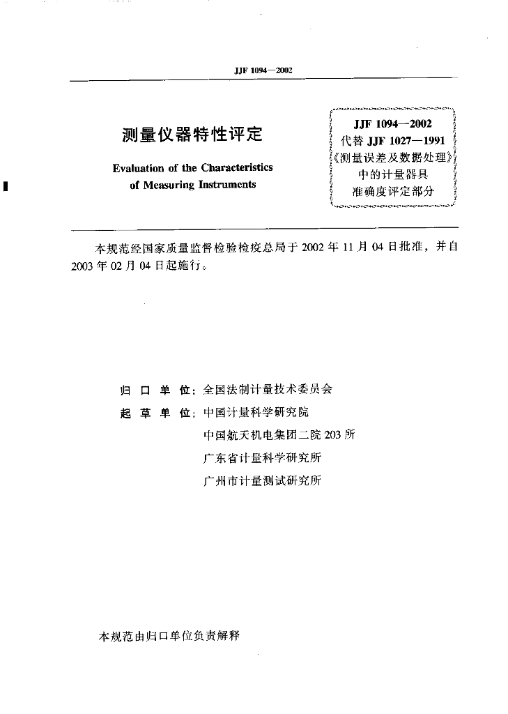 中国计量科学研究院、中国航天机电集团二院203所、广东省计量科学研究所、广州市计量测试研究所