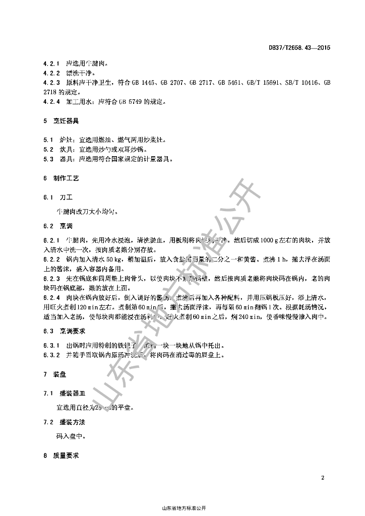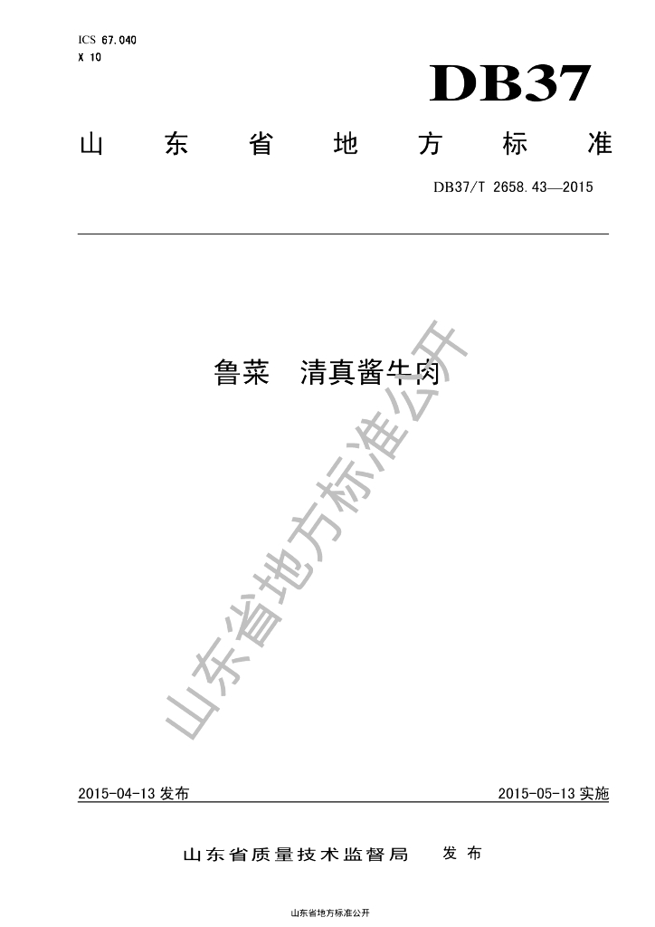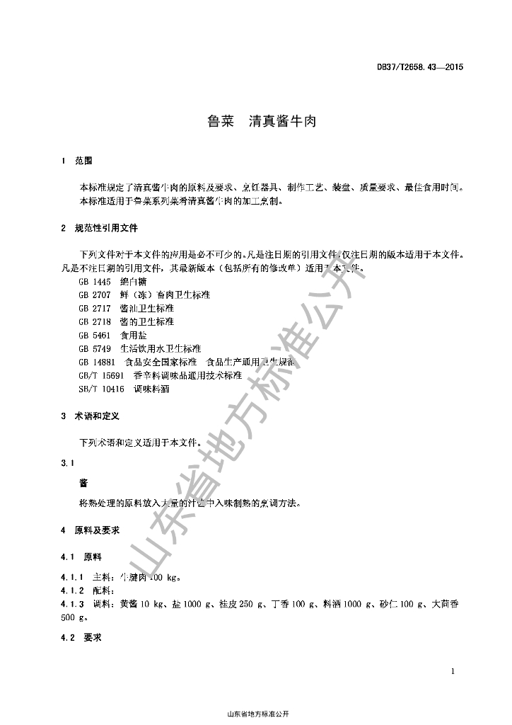 DB37/T 2658.43-2015 鲁菜 清真酱牛肉