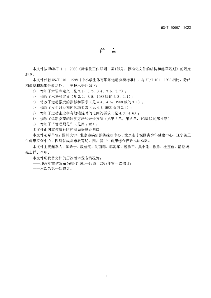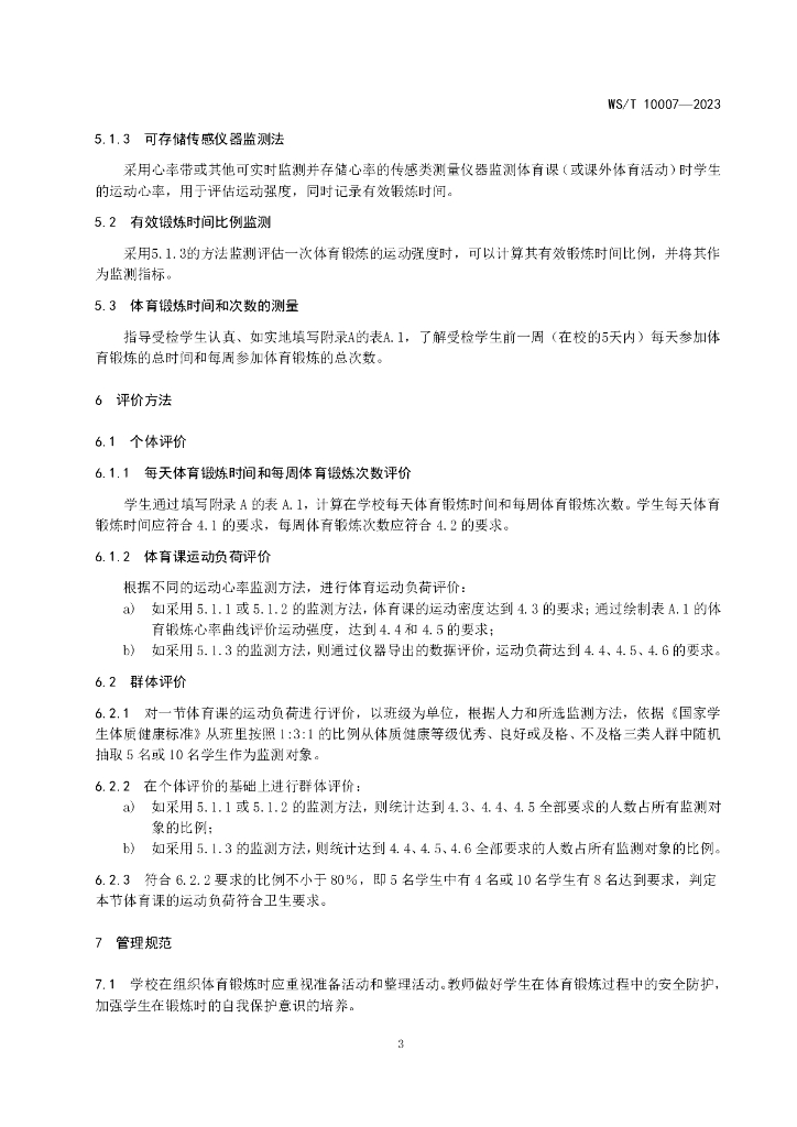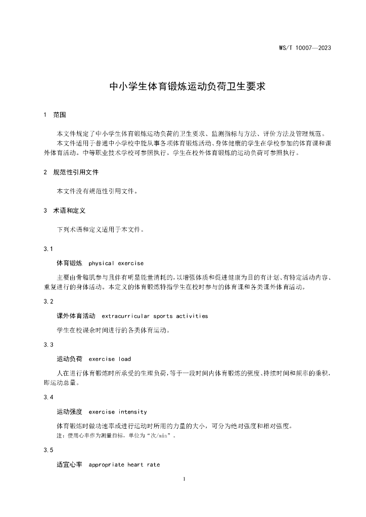 WS/T 10007-2023 中小学生体育锻炼运动负荷卫生要求