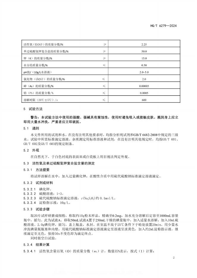 HG/T 6279-2024 水处理剂 单过硫酸氢钾泡腾片