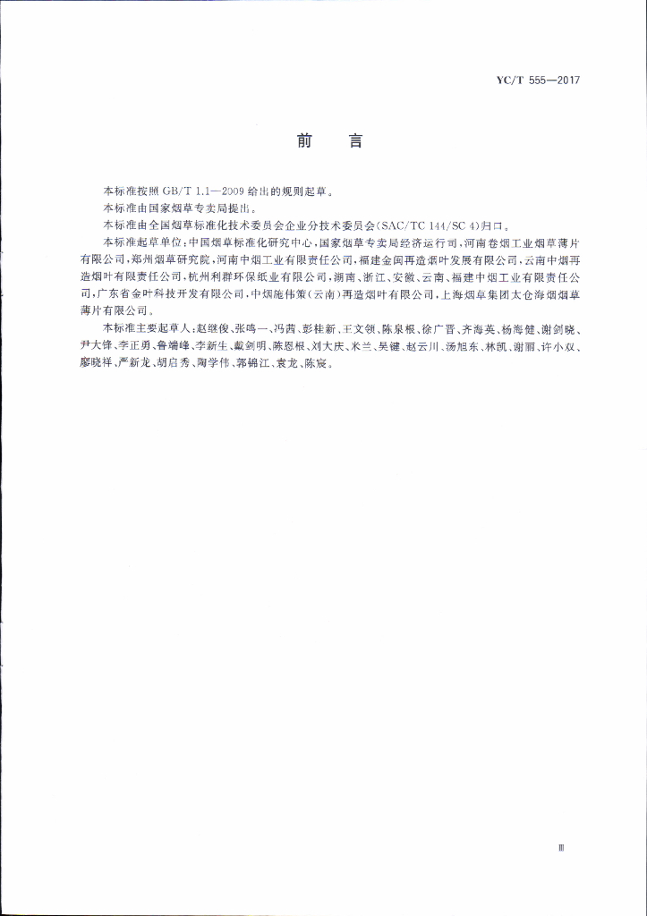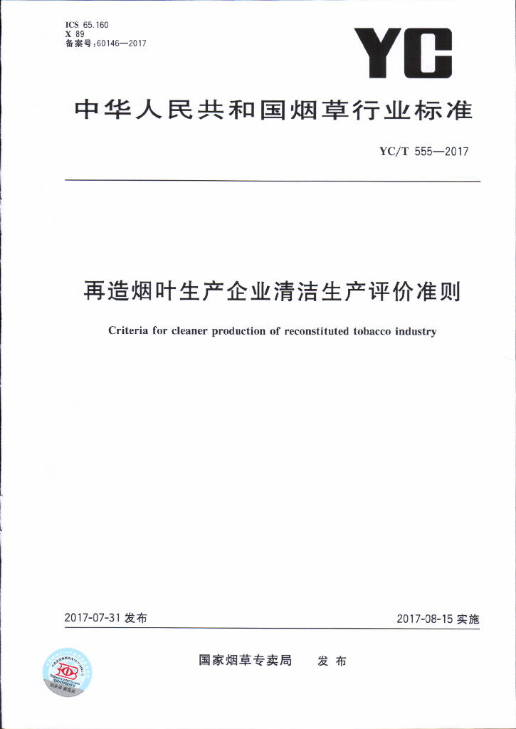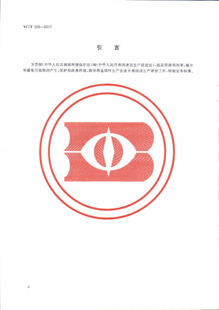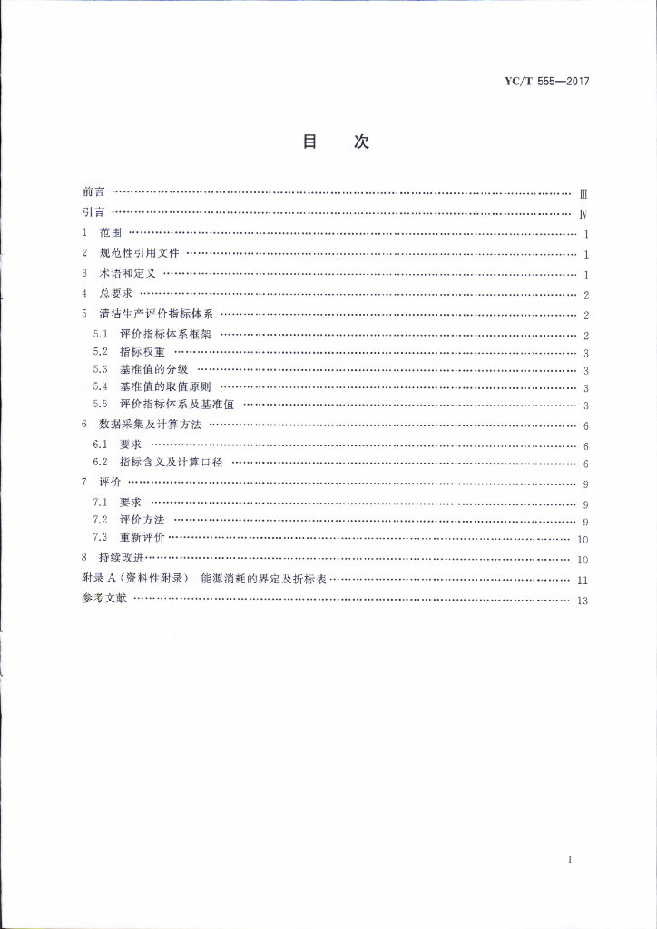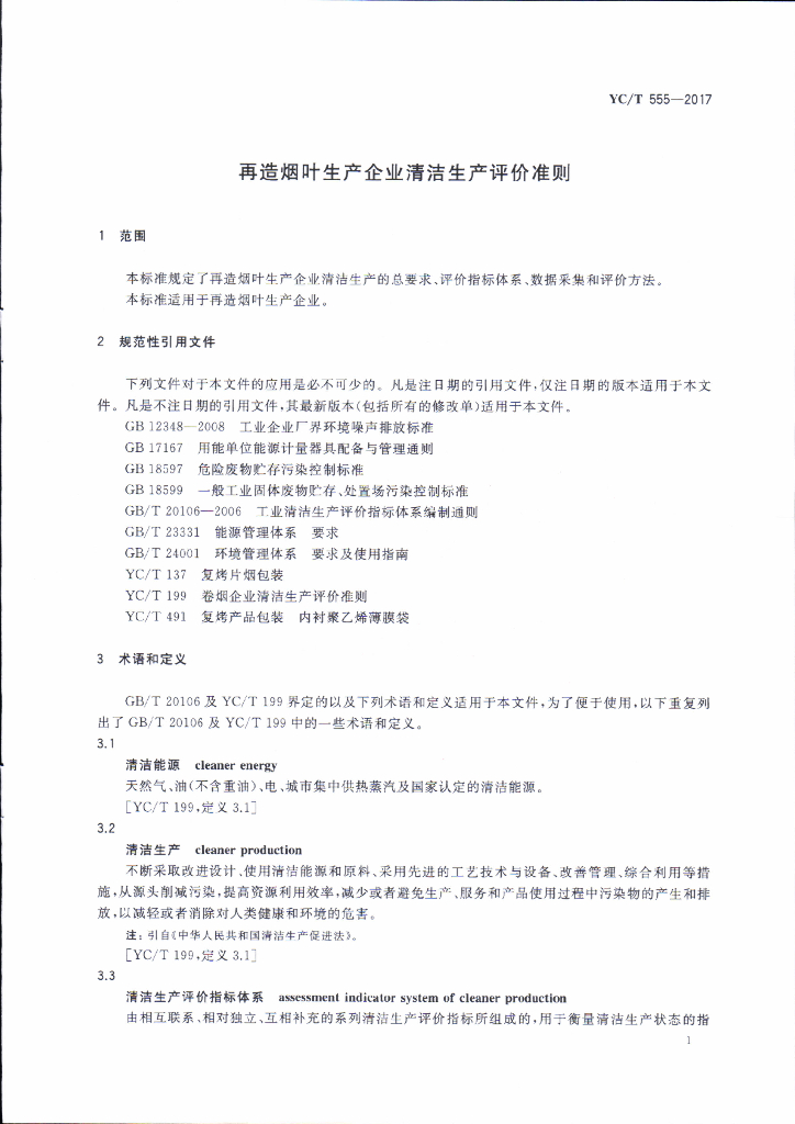 YC/T 555-2017 再造烟叶生产企业清洁生产评价准则
