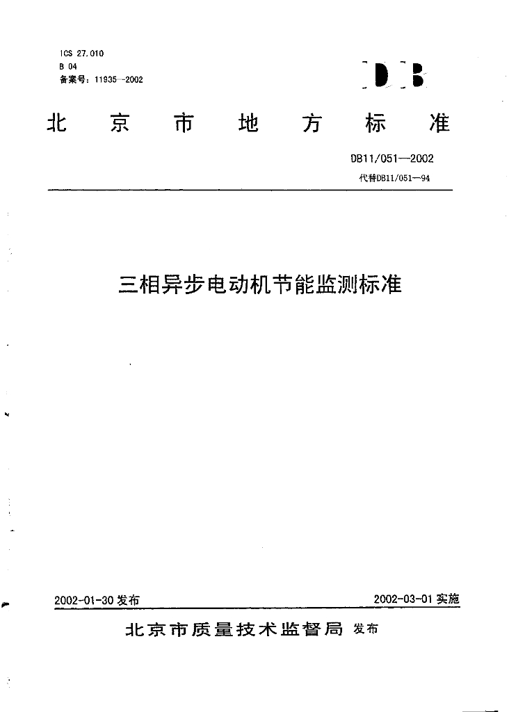 DB11/ 051-2002 三相异步电动机节能监测标准
