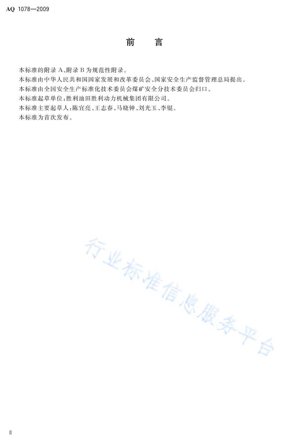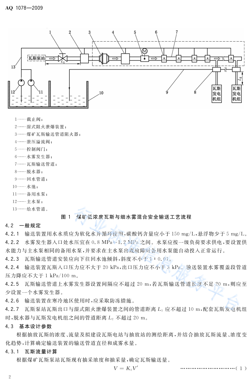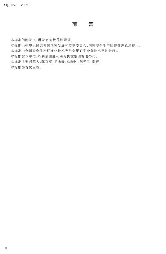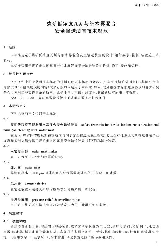 AQ 1078-2009 煤矿低浓度瓦斯与细水雾混合安全输送装置技术规范