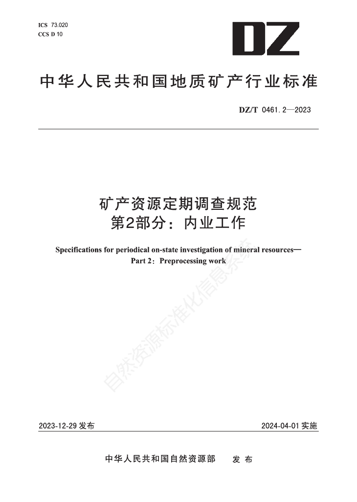 DZ/T 0461.2-2023 矿产资源定期调查规范 第2部分:内业工作
