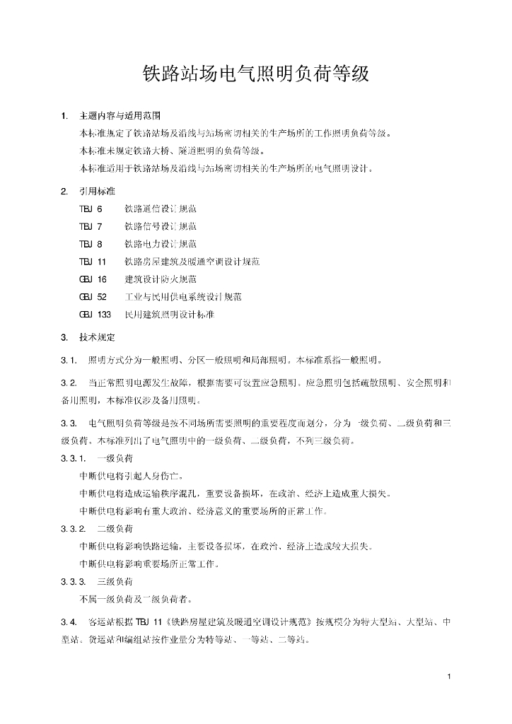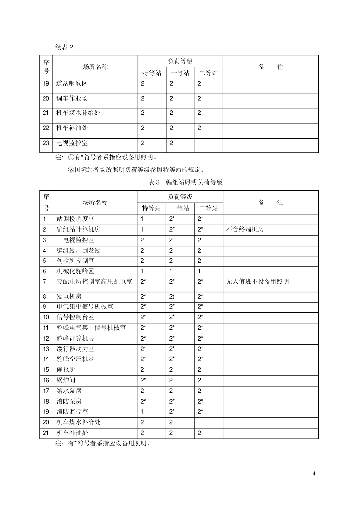 TB/T 2581-1995 铁路站场电气照明负荷等级