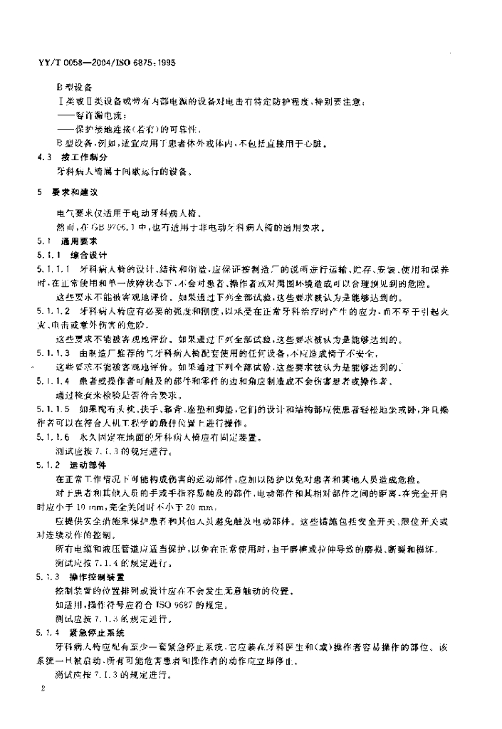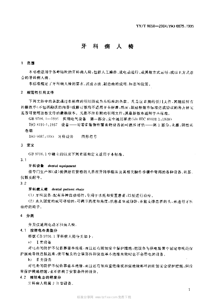 YY/T 0058-2004/ISO 6875:1995 牙科病人椅
