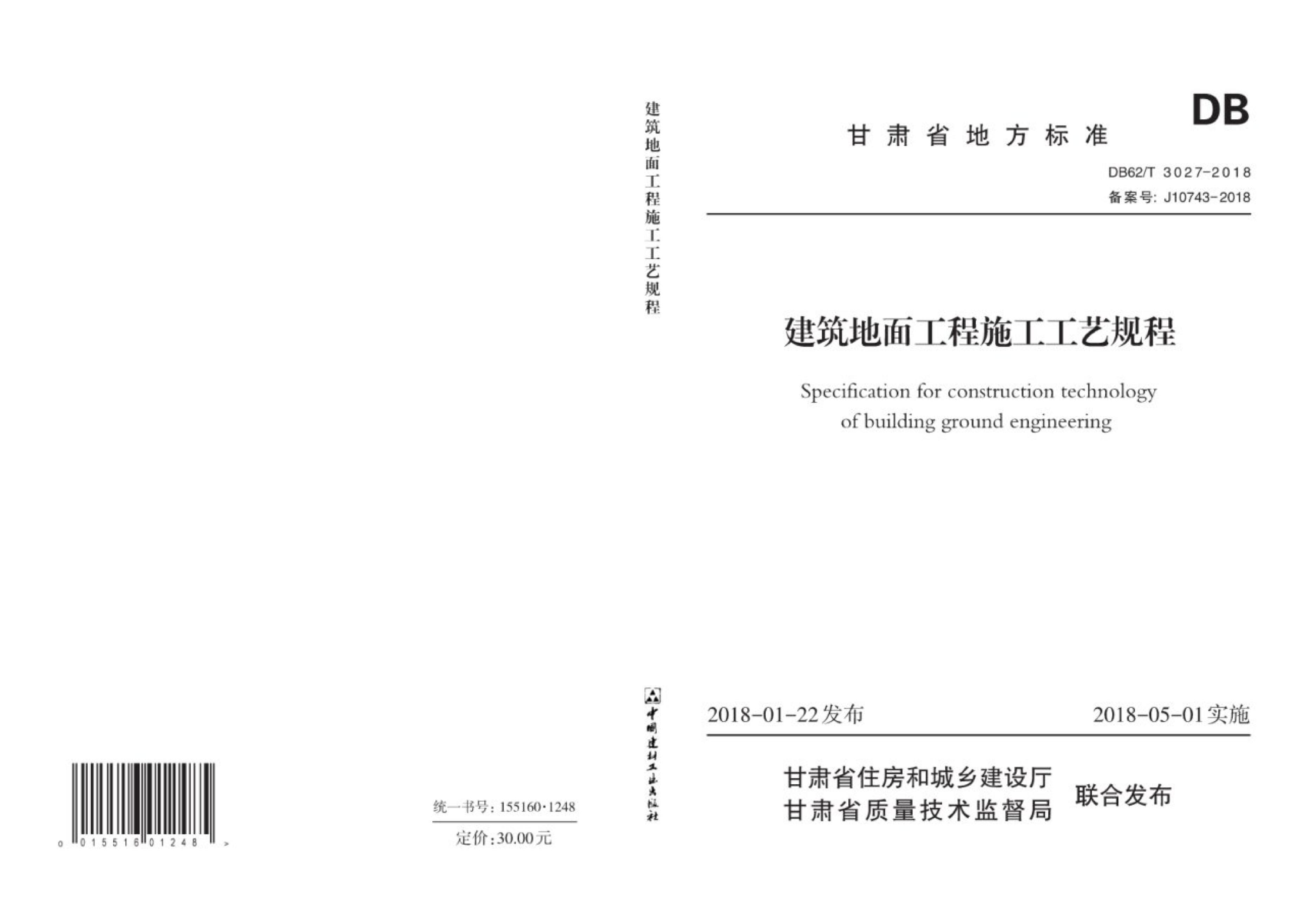 DB62/T 3027-2018 建筑地面工程施工工艺规程