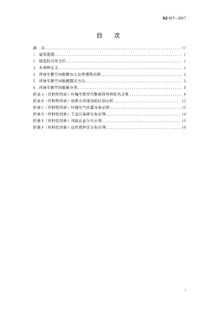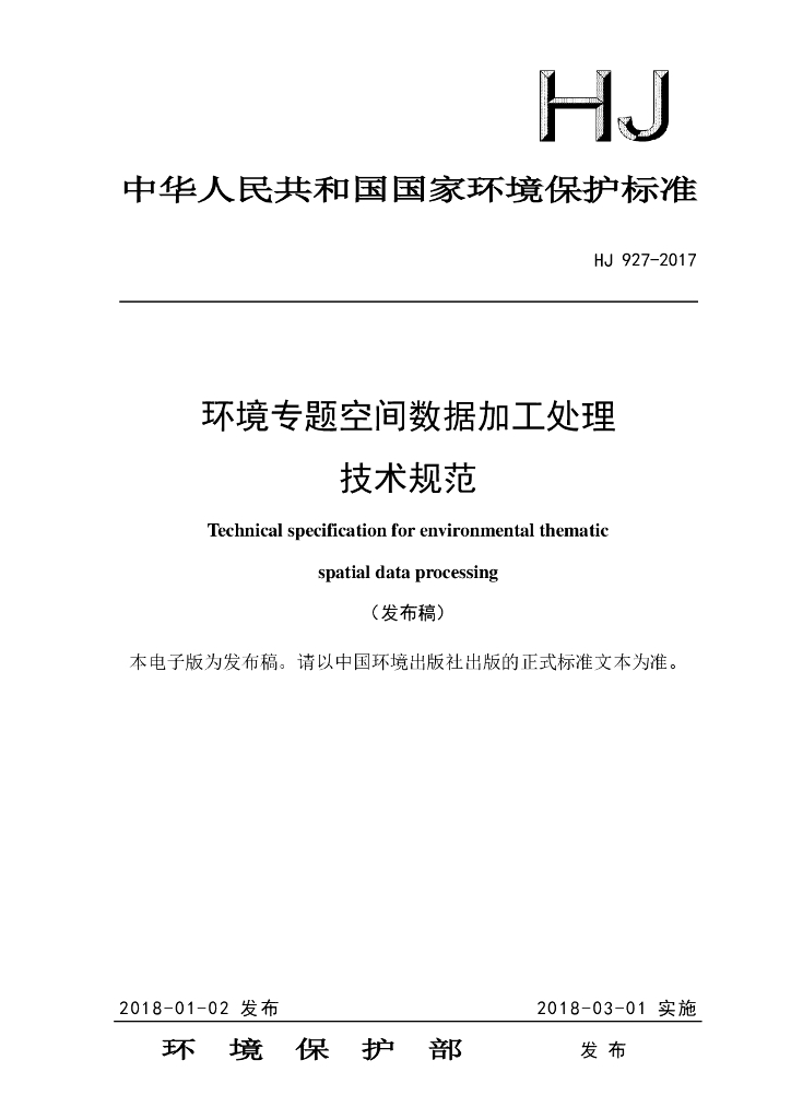 HJ 927-2017 环境专题空间数据加工处理技术规范