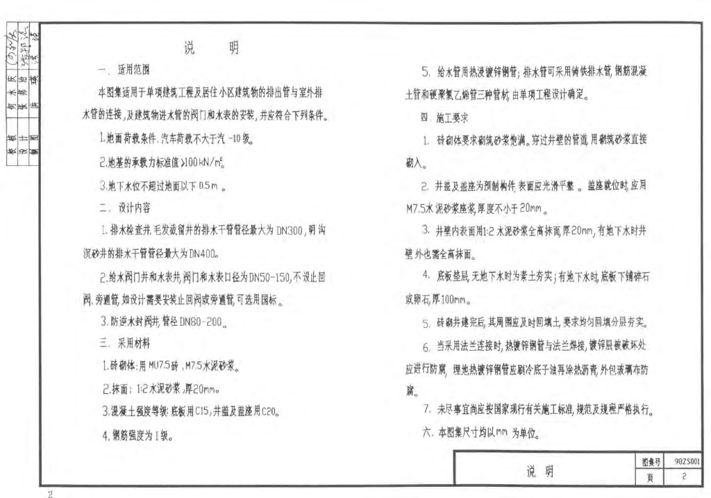 98ZS001 建筑给水排水小型砖砌井(中南标图集)